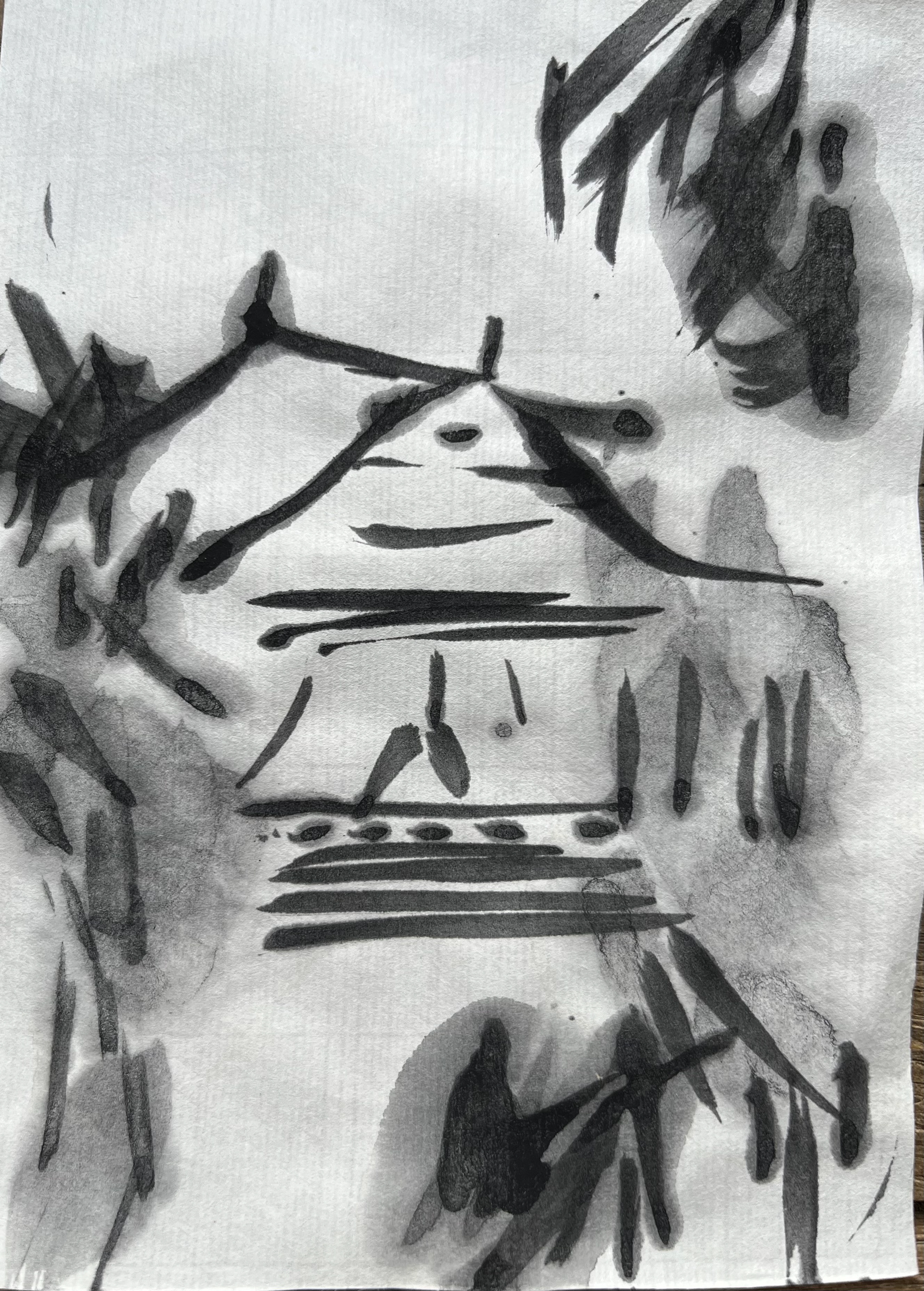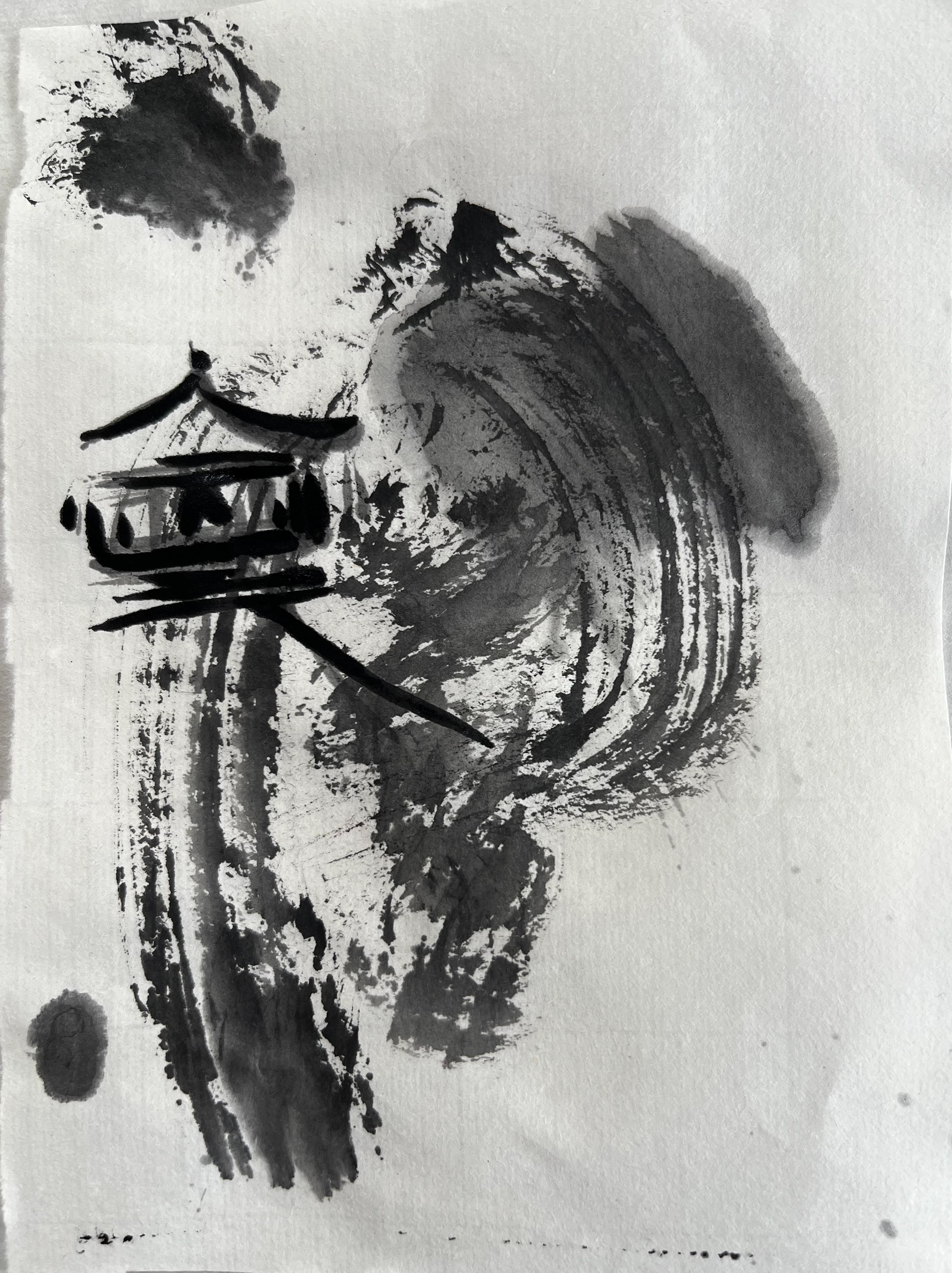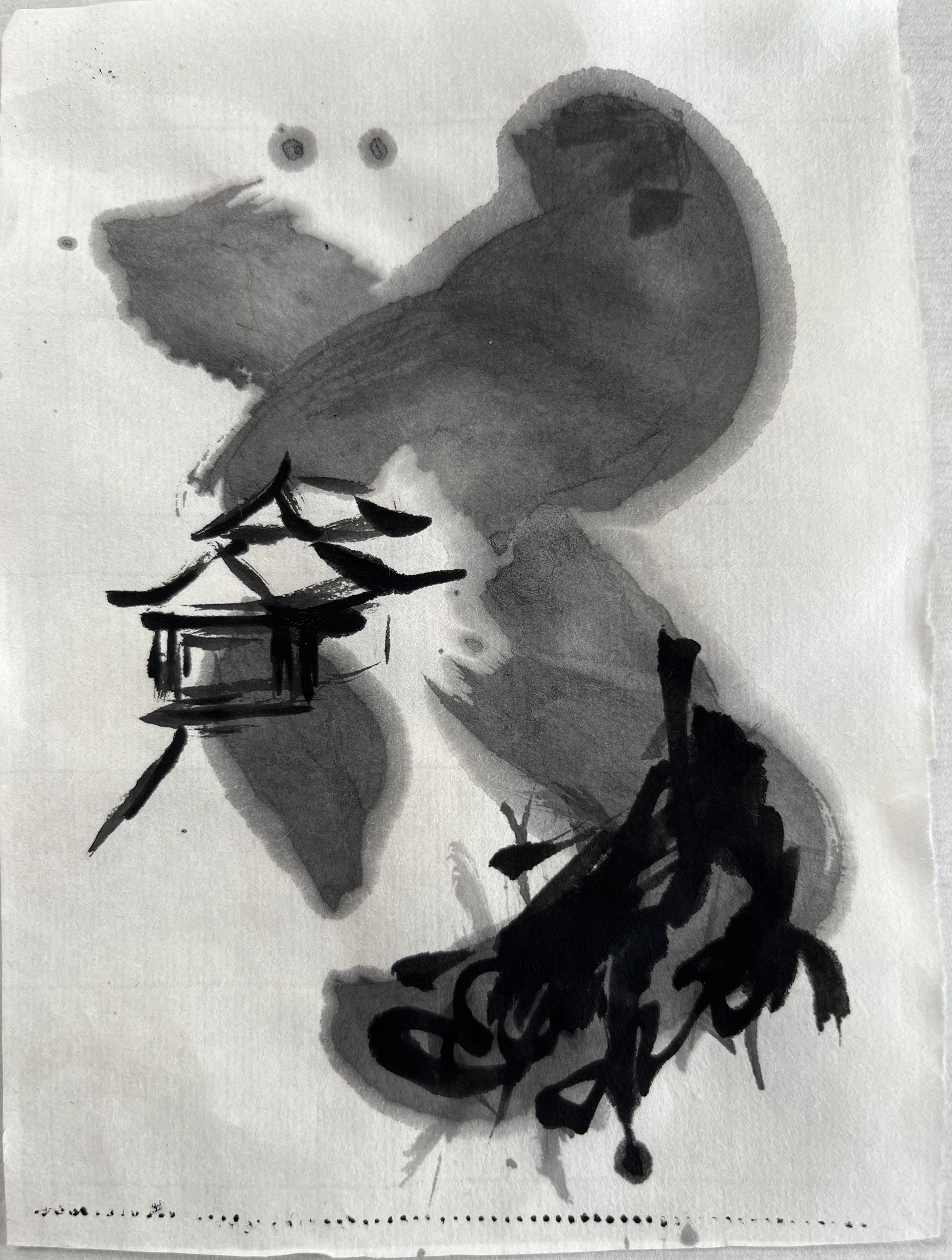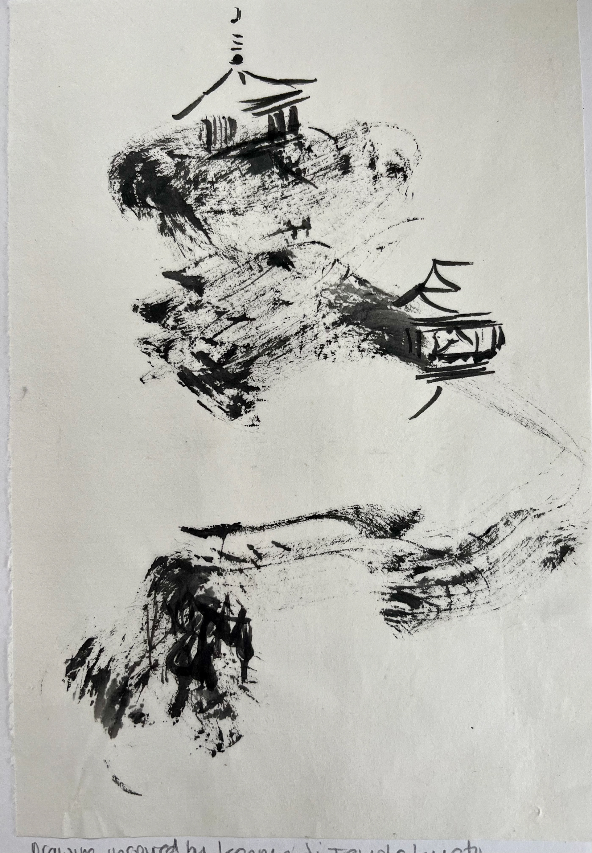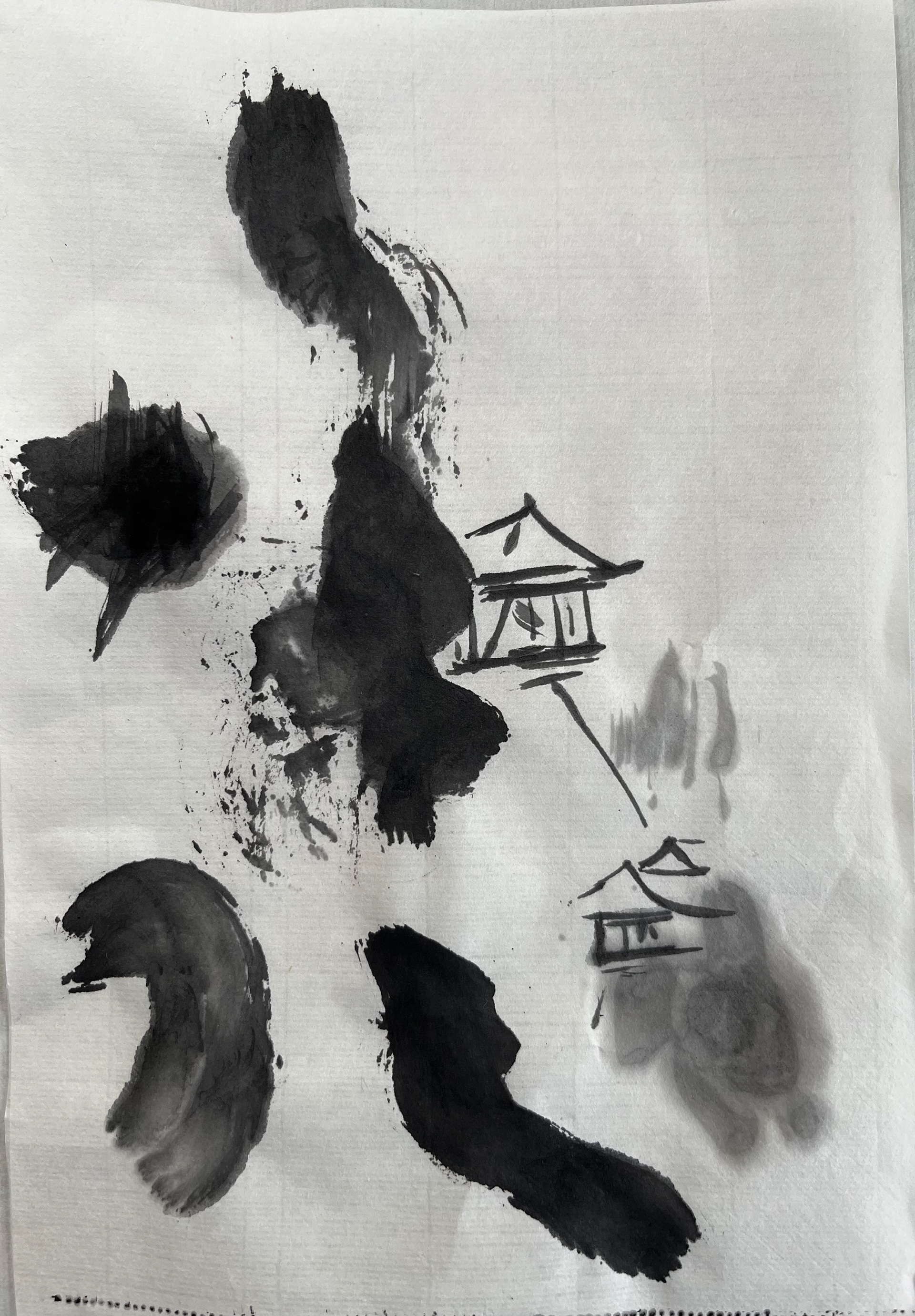 Drawing made with ink on washi paper. Inspired by the screens in the Kennington-ji temple Kyoto Japan.